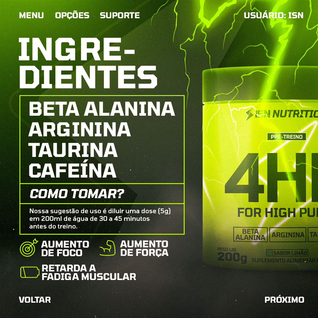 Em apenas uma dose de 5g o 4HP, For High Pump lhe fornece: